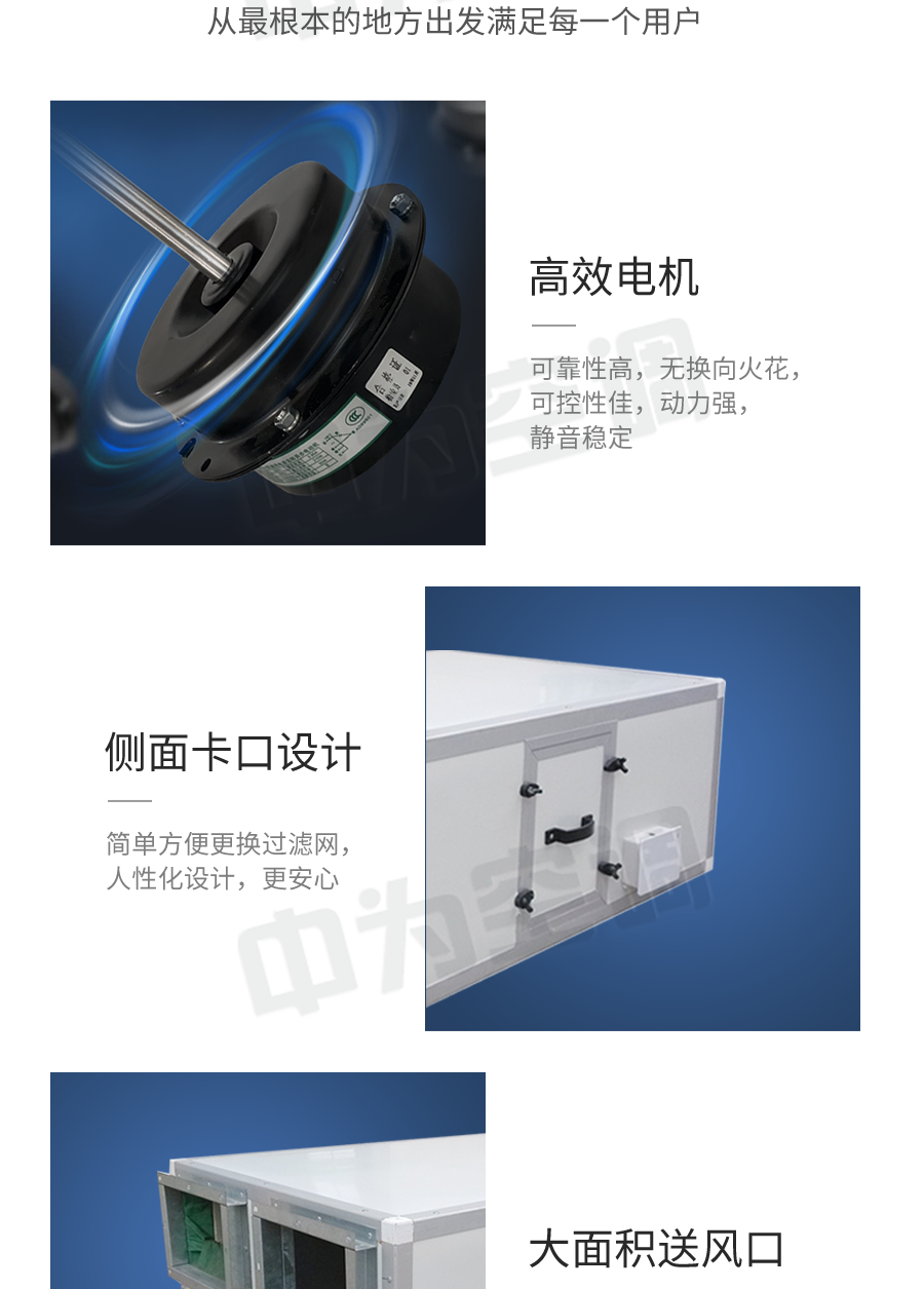 吊頂式新風(fēng)機(jī)組是提供新鮮空氣的一種空氣調(diào)節(jié)設(shè)備。功能上按使用環(huán)境的要求可以達(dá)到恒溫恒濕或者單純提供新鮮空氣。工作原理是在室外抽取新鮮的空氣經(jīng)過除塵、除濕(或加濕)、降溫(或升溫)等處理后通過風(fēng)機(jī)送到室內(nèi),在進(jìn)入室內(nèi)空間時(shí)替換室內(nèi)原有的空氣。當(dāng)然以上所提到的功能得根據(jù)使用環(huán)境的需求來定,功能越齊全造價(jià)越高。