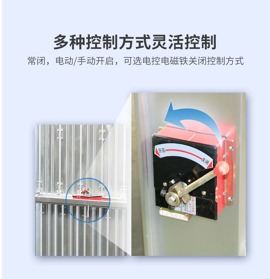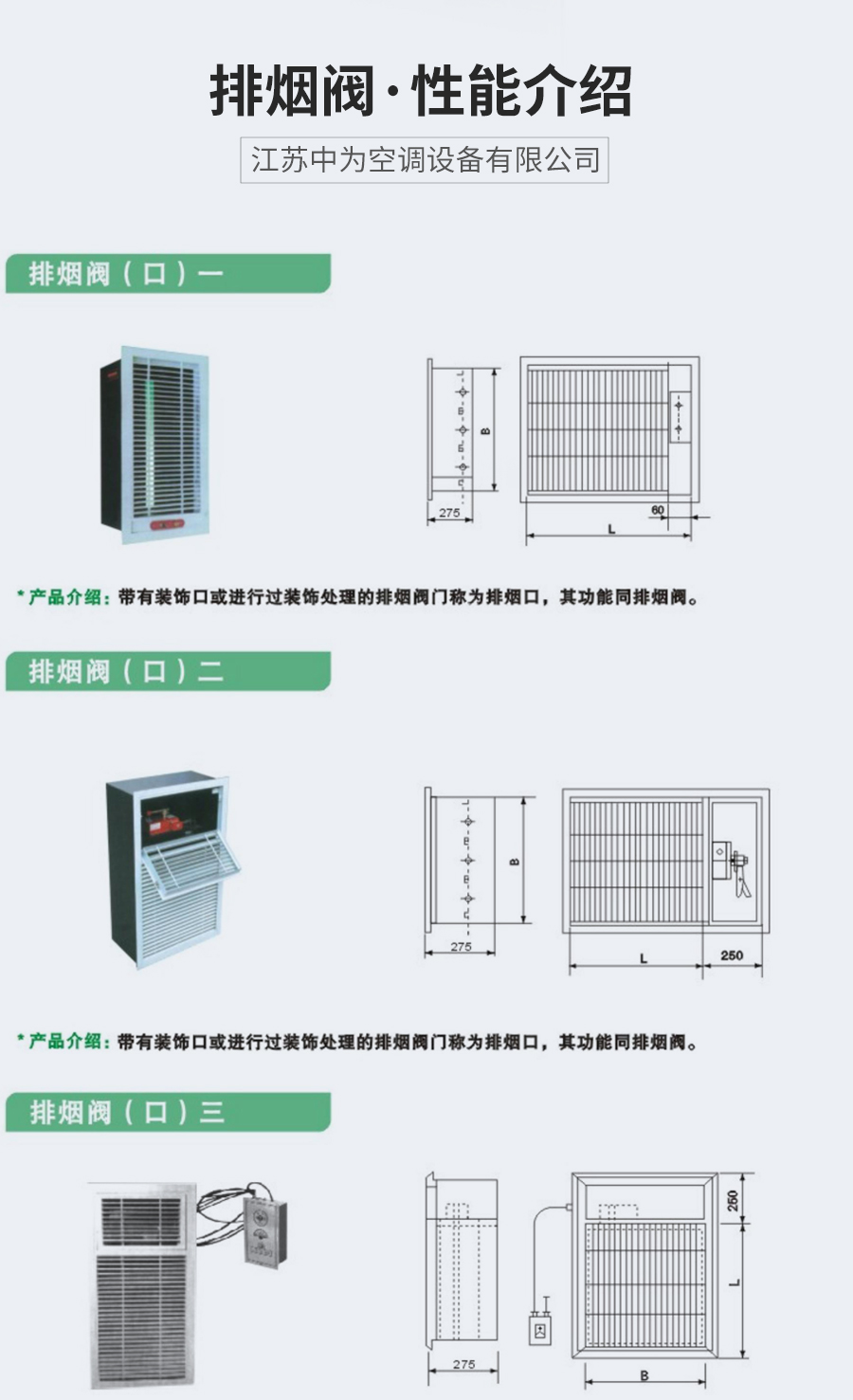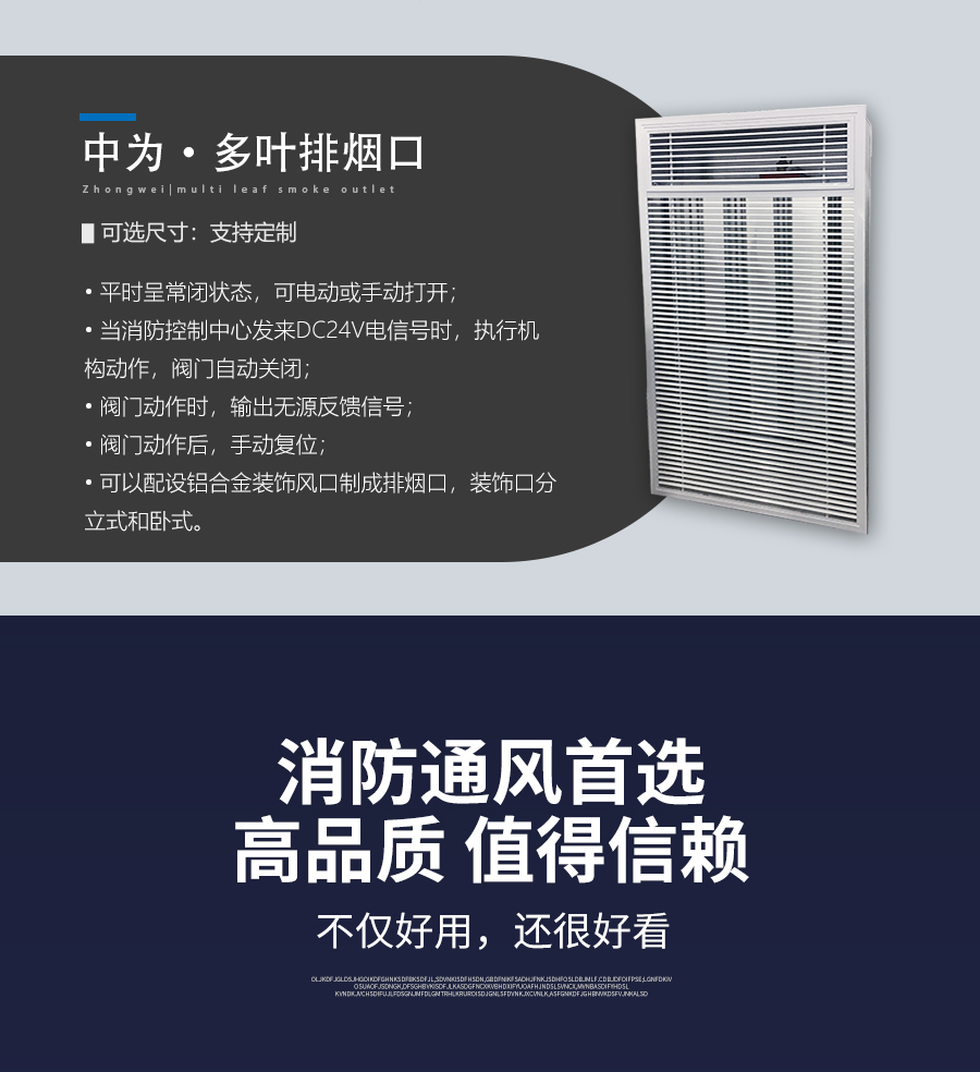 中為多葉排煙口 閥門平時常閉; Dc24V電動開啟,手動開啟,輸出開啟信號; 手動復位。