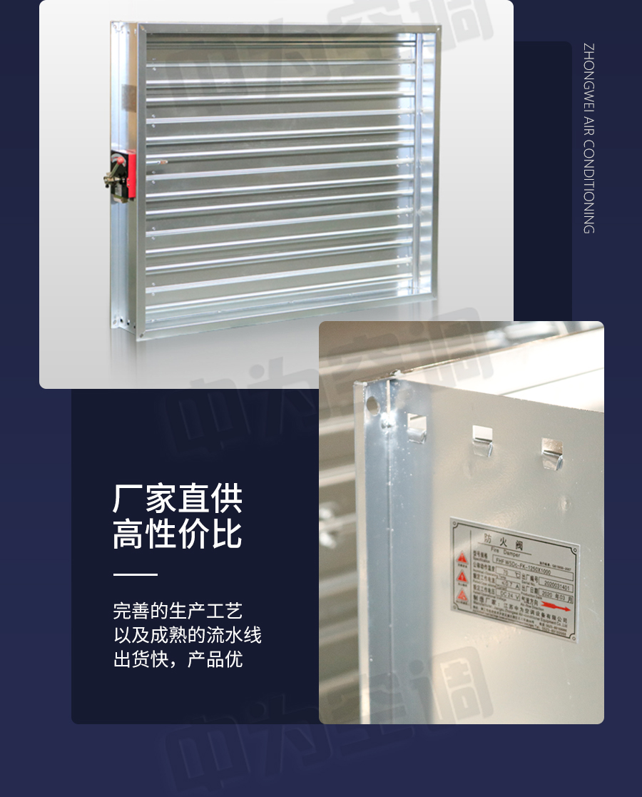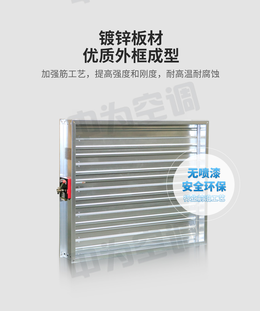 中為多葉排煙口 閥門平時常閉; Dc24V電動開啟,手動開啟,輸出開啟信號; 手動復位。