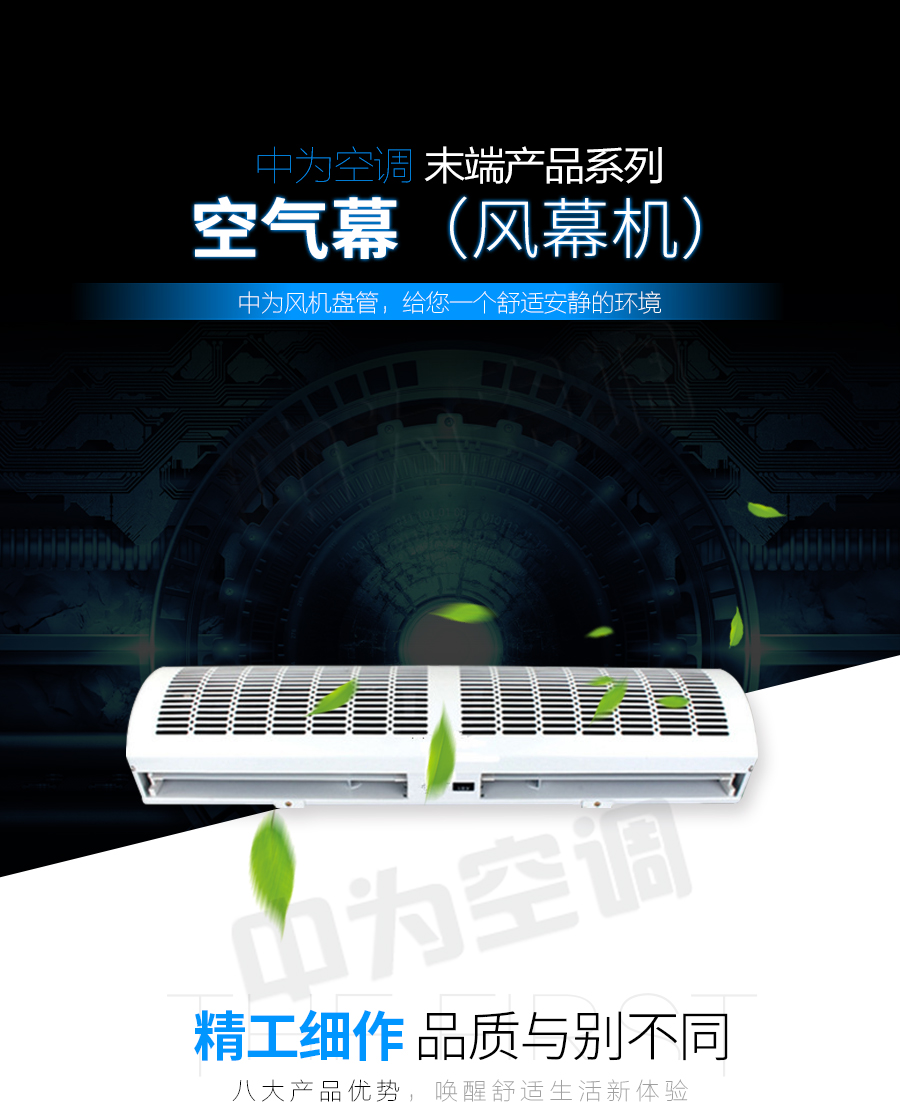 中為空調——空氣幕,在現代化建設過程中,隨著工業生產、科學技術、文化旅游事業的迅速發展,人們要求工作和生活環境的潔凈和舒適程度也日益提高,為了防止室外冷、熱空氣侵入和室內污染空氣擴散,又節省能源消耗不影響人員、車輛進出門,采用本廠生產的空氣幕是一種極其有效的措施