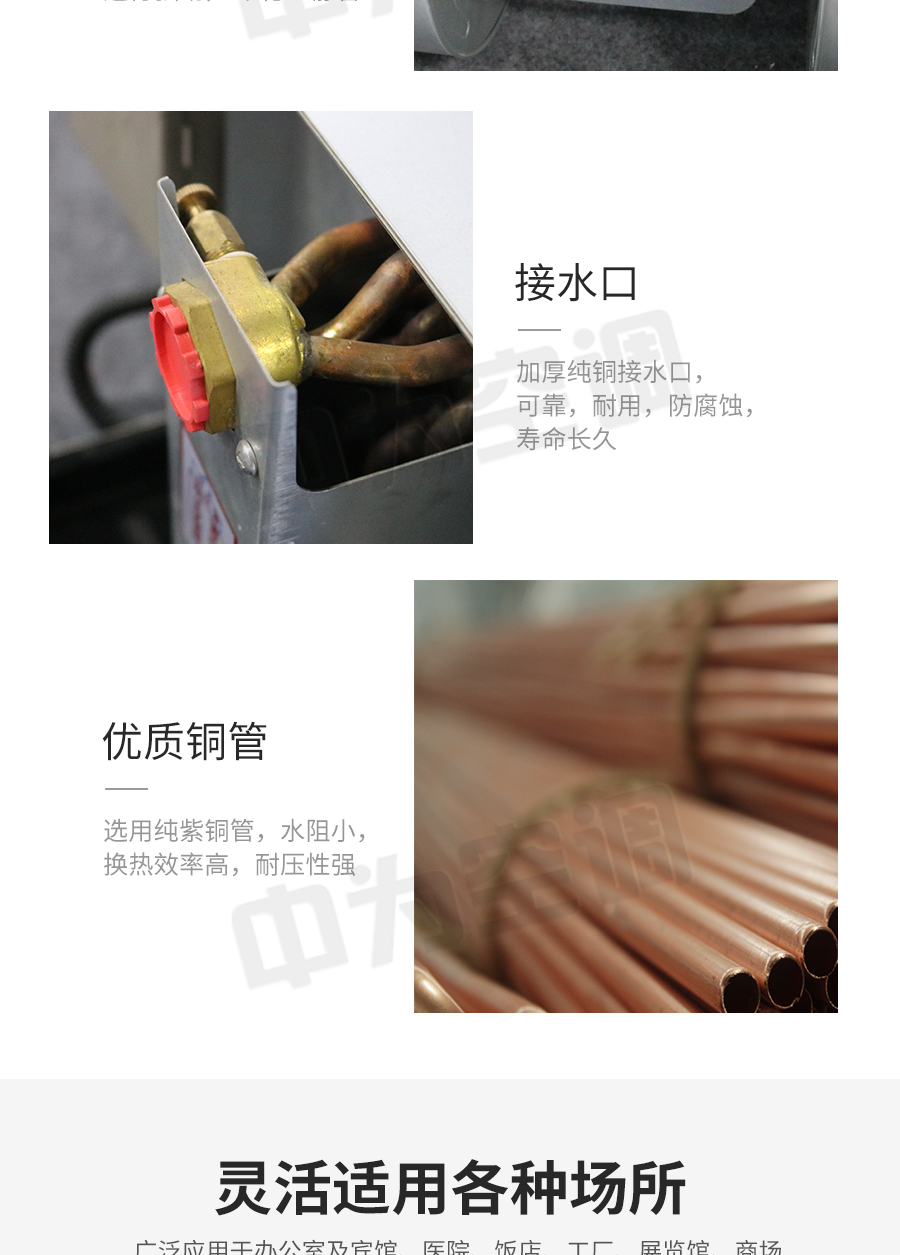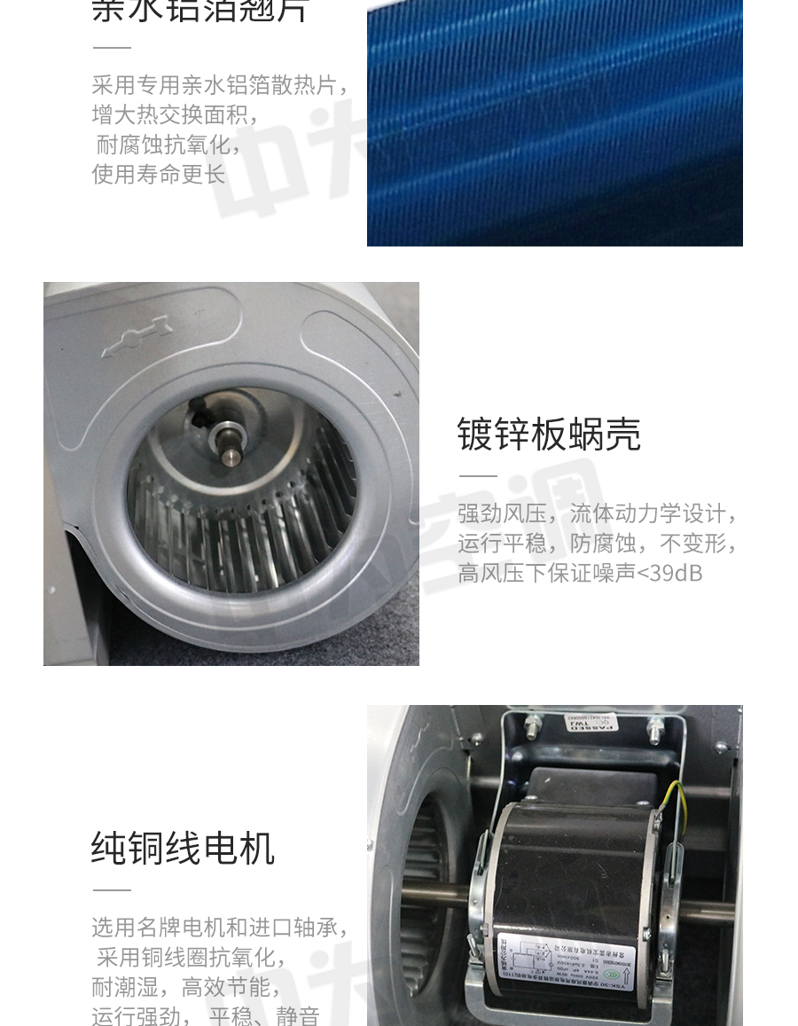 中為臥式暗裝風機盤管是中央空調理想的末端產品,其工作原理是機組內不斷的再循環所在房間或室外的空氣,使空氣通過冷水(熱水)盤管后被冷卻(加熱),以保持房間溫度的恒定。雙保風機盤管采用優質薄壁無縫紫銅管與親水鋁翅片,經液壓或機械漲管而成,傳熱系數高,韌性好,強度大,可承受高水壓,可以在超高層建筑使用。